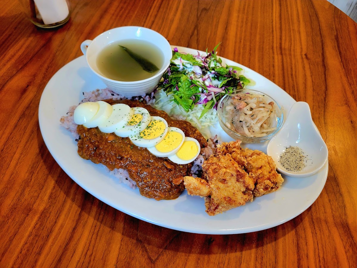 Now, let’s talk about the food! The cafe features a diverse menu that caters to various tastes. The Keema Curry served with a tender boiled egg on top is a must-try. Each bite envelops you in rich spices, fulfilling yet indulgent, delivering a true taste of authenticity that will make you yearn for more. If you're in the mood for something a little more exotic, the Mochiko Chicken will take you on a flavor journey reminiscent of Hawaiian street food—crunchy on the outside and juicy within, with subtle hints of ginger that tantalize your taste buds.